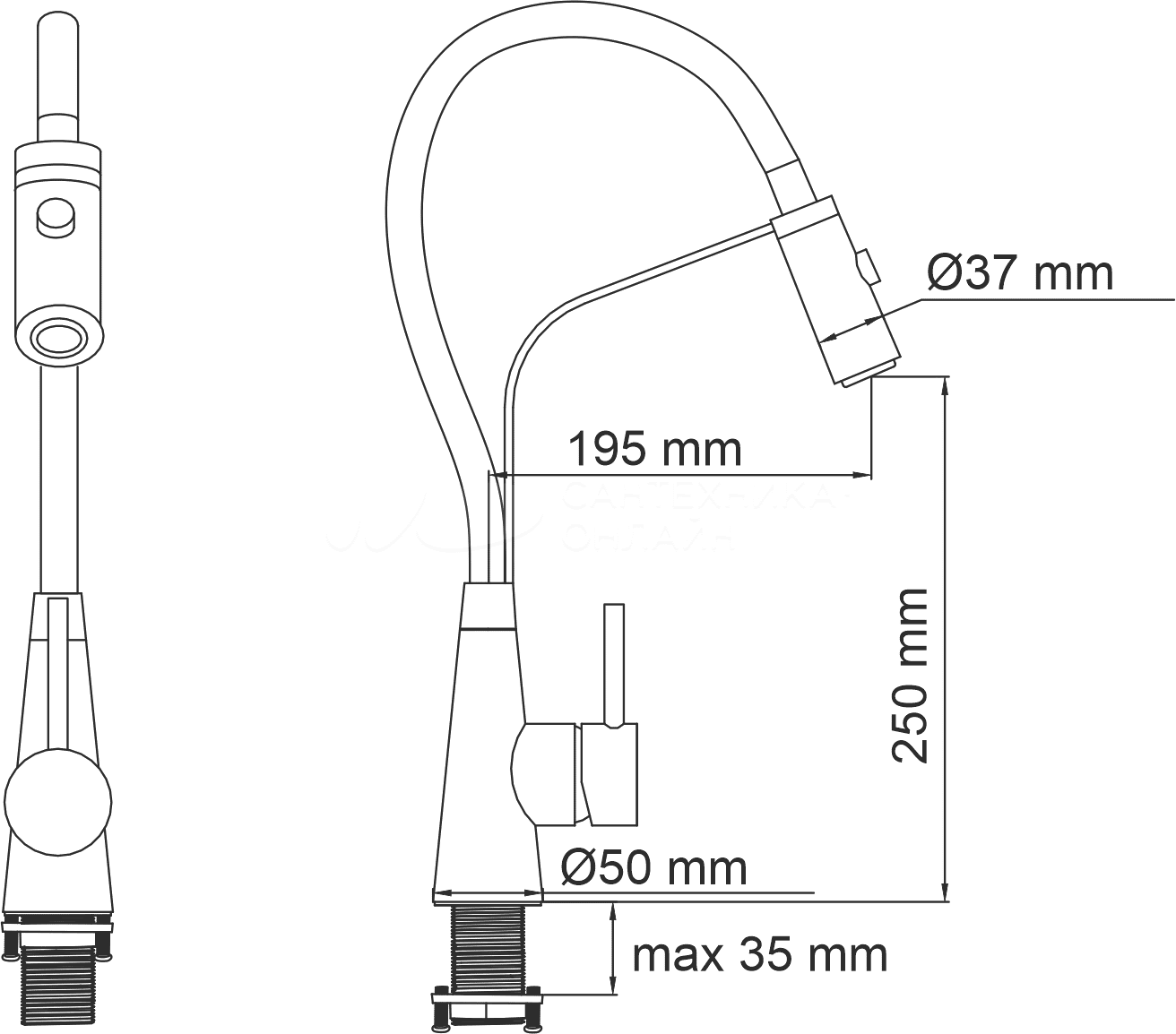 - Длина излива, см:19.5
