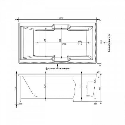 - Размер: 190x100x72 см. Глубина: 50 см. Объем: 450 л.