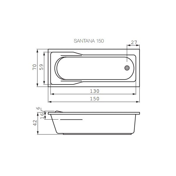 Акриловая ванна Cersanit SANTANA 150х70