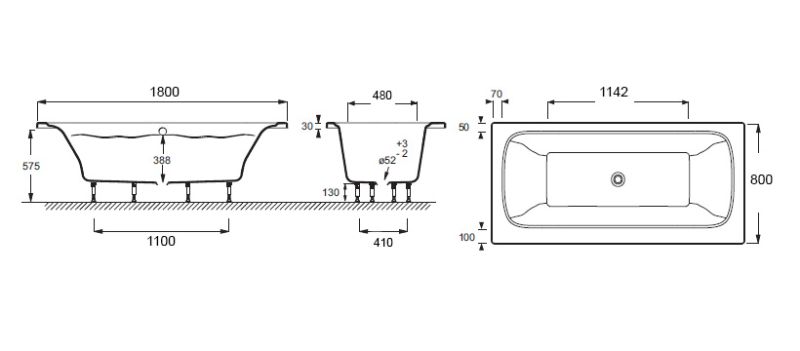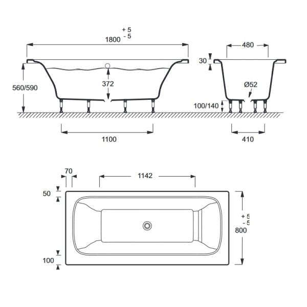Смягченные углы с внутренней стороны чаши ванны облегчают уход.ELITE Акриловая ванна, слив в центреРАЗМЕРЫ :180 x 80 x 44,50 см