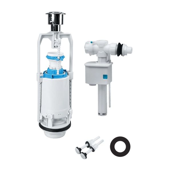 Одноуровневая арматура с боковым подводом воды (тип А). Комплектация: Круглая резиновая прокладка, пластиковые крепления-болты (2 шт.), паспорт изделия. Все подвижные части находятся внутри защитного корпуса и изготовлены из высококачественного пластика. Гарантия 7 лет.