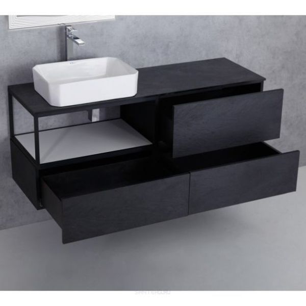 База под металлический каркас подвесная с двумя выкатными ящиками c механизмами PUSH (BLUM) и функцией плавного закрывания, без верхней крышки70х46х55смЧёрная
