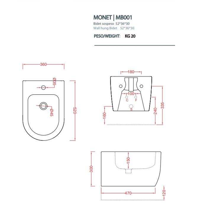 Биде Artceram Monet MNB001 05 00 белоеArtceram MONET Биде подвесное 36х52 см, 1 отверстие, цвет белый матовый