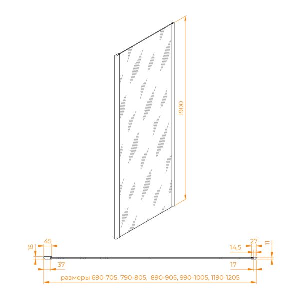 Комплектуется с моделями высотой 1900 мм и цветом профиля «хром»