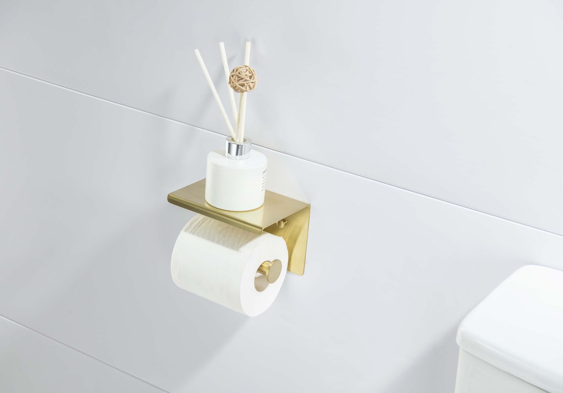 Бумагодержатель с полкой Aquatek Европа AQ4939BG шлифованное золото