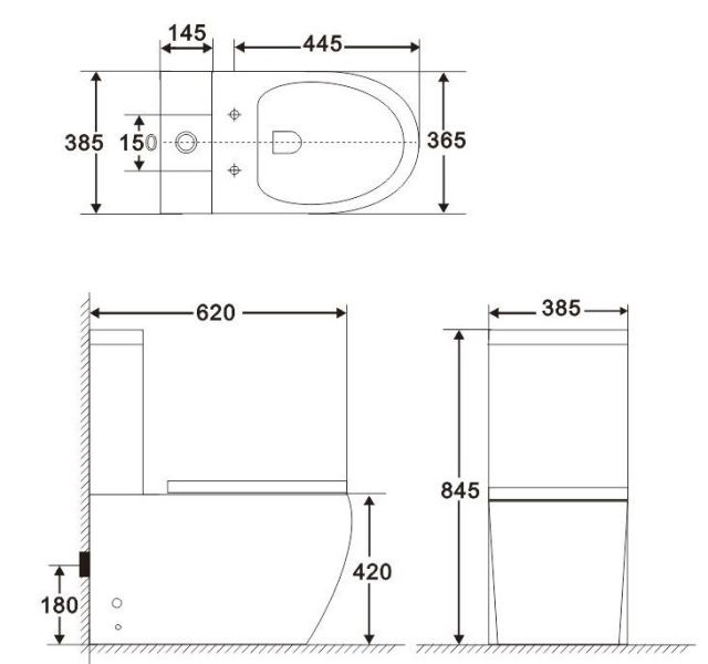 - Укороченный унитаз:нет