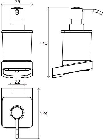 Дозатор для мыла 10° является незаменимым аксессуаром для ежедневного мытья рук. Контраст матового черного цвета и матового стекла создает уникальное сочетание стильных аксессуаров современной ванной комнаты.