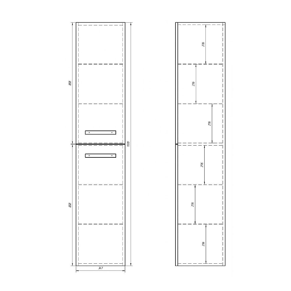 Пенал для коллекций Alfa, Almi. Фасад белый лак МДФ. Стеклянные полки с возможностью перестановки полок по высоте. Подвесной/напольный. В комплект для установки на пол нужно докупить ножки QL. Левый/Правый (перевешиваются дверцы)