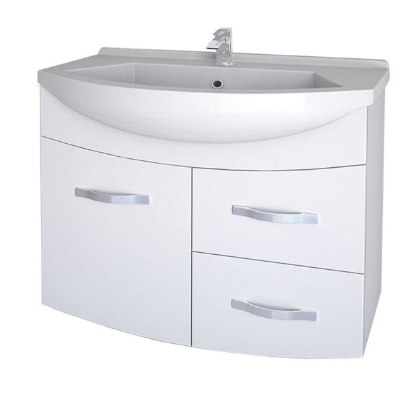 Подвесная коллекция со скругленными линиями фасада в 4-х размерах 55, 65, 75, 90 Лаконичный дизайн, глянцевая поверхность фасада, механизмы Hettich. Небольшая глубина тумбы органично впишется в любую, даже небольшую ванную комнату. Глубокий ящик
