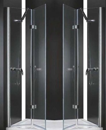 Дверь в проемТип дверей: две распашные.Стекло: 6 мм, С (прозрачное), P (Punto).Исполнение: хром.Поддон: А, AH или барьером из искусственного мрамора типа B.Барьер и поддон приобретаются отдельно.