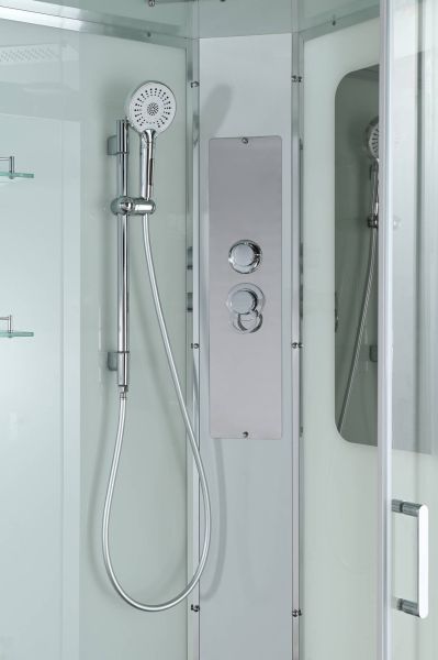 Стильная душевая кабина AvaCan сочетает в себе высокую функциональность, практичность и надежность. При изготовлении применяется безопасное закаленное стекло, надежно фиксируемое алюминиевым профилем. Профиль сделан из алюминия повышенной прочности. Сборка без силикона (увеличивает срок службы, защищает от протечек), внутренняя сборка (облегчает установку и ревизию; позволяет установить в ограниченном пространстве и обойтись без демонтажа других сантехнических приборов), смеситель резьбовой (без хомутов). Двойные металлические ролики дверей (распределение нагрузки на два ролика, увеличивают срок службы). Душевая штанга(позволяет регулировать по высоте ручную лейку), ручная арома-лейка с витамином С (картридж в комплекте,есть возможность замены или удаления картриджа), полочки(из стекла, с ограничителем), сифон с гидрозатвором.