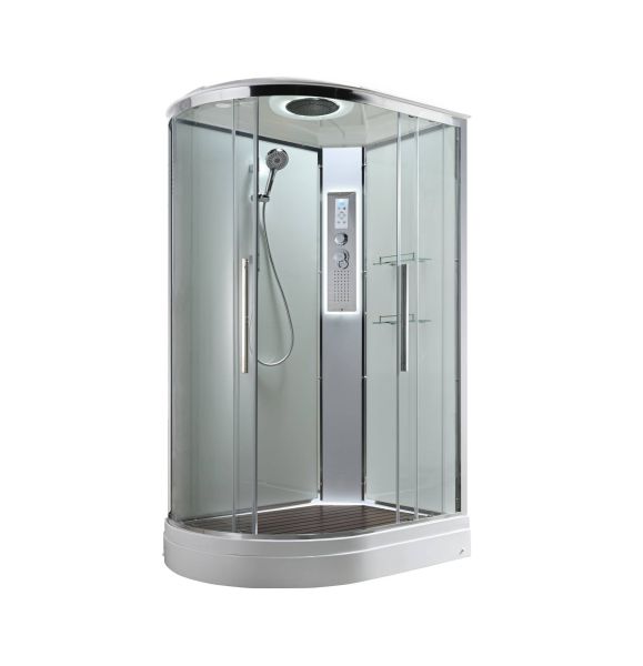 Стильная душевая кабина AvaCan EM2811RLEDT сочетает в себе высокую функциональность, практичность и надежность. При изготовлении применяется безопасное закаленное стекло толщиной 5 мм (прозрачное), надежно фиксируемое алюминиевым профилем. Сборка без силикона (увеличивает срок службы), внутренняя сборка(облегчает установку и ревизию; позволяет установить в ограниченном пространстве), смеситель резьбовой (без хомутов). Съемный экран поддона (позволяет осуществлять ревизию сифона). Цвет профиля хром. Двойные металлические ролики дверей (увеличивают срок службы).В комплекте : душевая штанга, две полочки , тропический (верхний) душ, арома-лейка с витамином С (картридж съемный),полимерная вставка в поддон(имитация дерева),сифон, ручки дверей из нержавейки , двойные ролики ,пульт сенсорный(Блютуз ,LED подсветка ,радио ,вытяжка),гидромассаж спины.