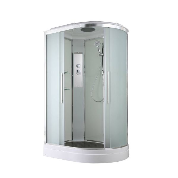 Стильная душевая кабина AvaCan EM2912L сочетает в себе высокую функциональность, практичность и надежность. При изготовлении применяется безопасное закаленное стекло толщиной 5 мм (матовое), надежно фиксируемое алюминиевым профилем. Сборка без силикона (увеличивает срок службы), внутренняя сборка(облегчает установку и ревизию; позволяет установить в ограниченном пространстве), смеситель резьбовой (без хомутов). Съемный экран поддона (позволяет осуществлять ревизию сифона). Цвет профиля хром. Двойные металлические ролики дверей (увеличивают срок службы).В комплекте : душевая штанга, две полочки , тропический (верхний) душ, арома-лейка с витамином С (картридж съемный),полимерная вставка в поддон(имитация дерева),сифон, ручки дверей из нержавейки , двойные ролики .