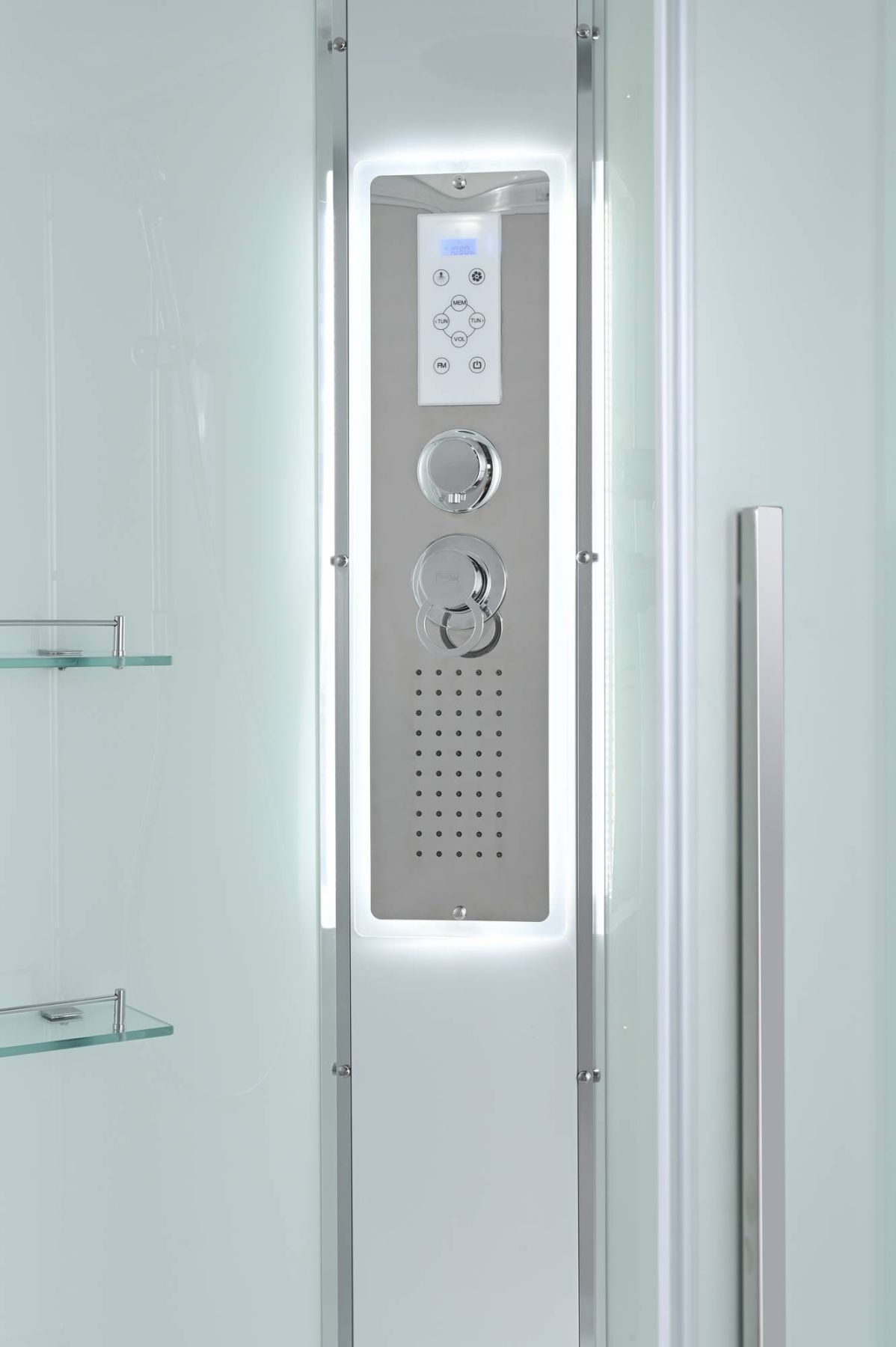 Стильная душевая кабина AvaCan сочетает в себе высокую функциональность, практичность и надежность. При изготовлении применяется безопасное закаленное стекло, надежно фиксируемое алюминиевым профилем.Профиль сделан из алюминия повышенной прочности. Сборка без силикона (увеличивает срок службы, защищает от протечек), внутренняя сборка (облегчает установку и ревизию; позволяет установить в ограниченном пространстве и обойтись без демонтажа других сантехнических приборов), смеситель резьбовой (без хомутов). Съемный экран поддона (позволяет осуществлять подключение и ревизию сифона).Двойные металлические ролики дверей (распределение нагрузки на два ролика, увеличивают срок службы). Душевая штанга(позволяет регулировать по высоте ручную лейку), ручная арома-лейка с витамином С (картридж в комплекте,есть возможность замены или удаления картриджа), полочки(из стекла, с ограничителем), сифон с гидрозатвором, сенсорный пульт управления с функциями: блютуз, LED подсветка, радио, вытяжка, гидромассаж спины, тропический (верхний) душ.