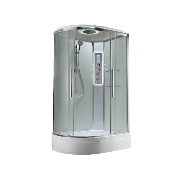 Стильная душевая кабина AvaCan сочетает в себе высокую функциональность, практичность и надежность. При изготовлении применяется безопасное закаленное стекло, надежно фиксируемое алюминиевым профилем.Профиль сделан из алюминия повышенной прочности. Сборка без силикона (увеличивает срок службы, защищает от протечек), внутренняя сборка (облегчает установку и ревизию; позволяет установить в ограниченном пространстве и обойтись без демонтажа других сантехнических приборов), смеситель резьбовой (без хомутов). Съемный экран поддона (позволяет осуществлять подключение и ревизию сифона).Двойные металлические ролики дверей (распределение нагрузки на два ролика, увеличивают срок службы). Душевая штанга(позволяет регулировать по высоте ручную лейку), ручная арома-лейка с витамином С (картридж в комплекте,есть возможность замены или удаления картриджа), полочки(из стекла, с ограничителем), сифон с гидрозатвором, сенсорный пульт управления с функциями: блютуз, LED подсветка, радио, вытяжка, гидромассаж спины, тропический (верхний) душ.