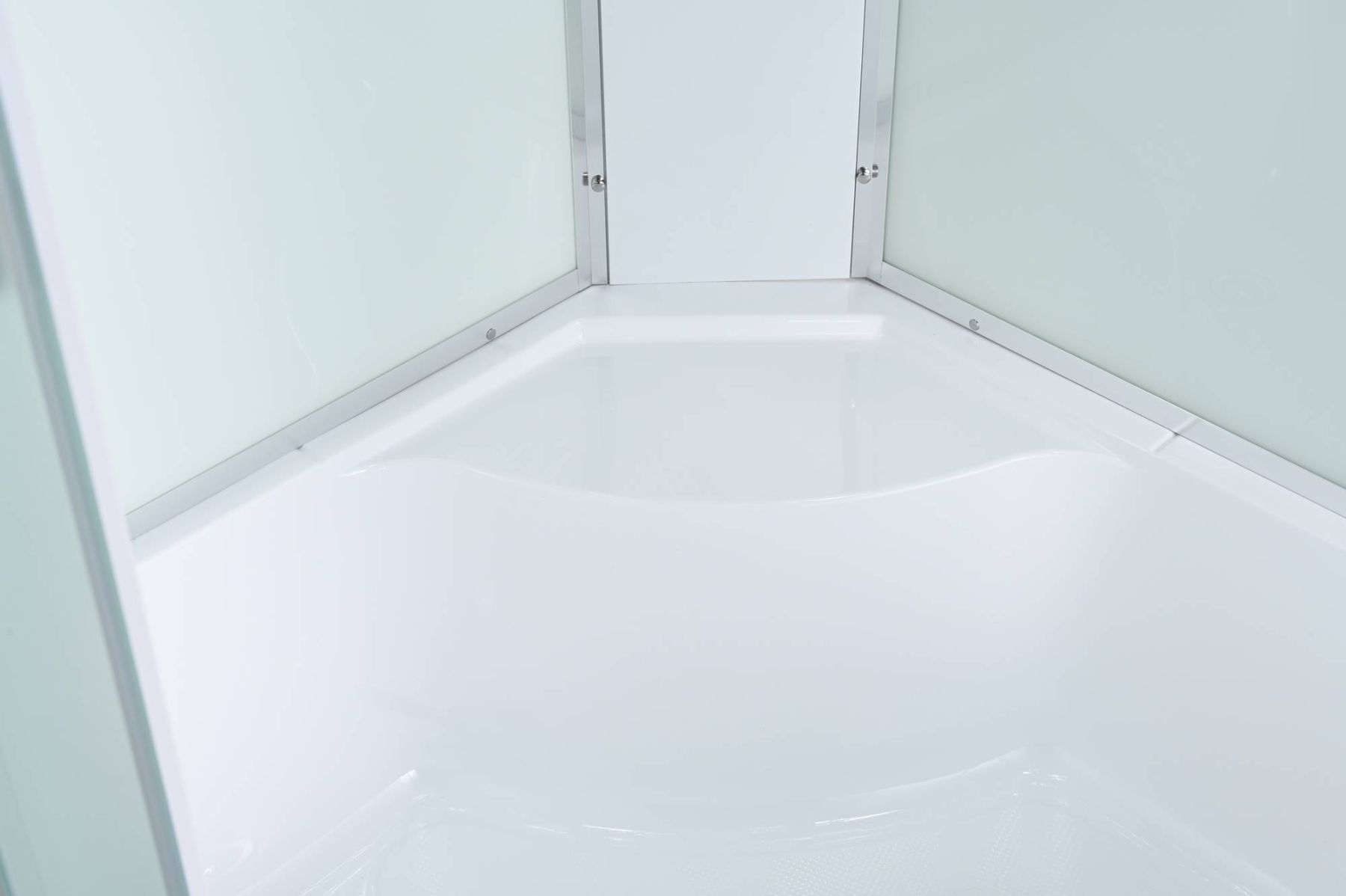 Стильная душевая кабина AvaCan сочетает в себе высокую функциональность, практичность и надежность. При изготовлении применяется безопасное закаленное стекло, надежно фиксируемое алюминиевым профилем. Профиль сделан из алюминия повышенной прочности. Сборка без силикона (увеличивает срок службы, защищает от протечек), внутренняя сборка (облегчает установку и ревизию; позволяет установить в ограниченном пространстве и обойтись без демонтажа других сантехнических приборов), смеситель резьбовой (без хомутов). Съемный экран поддона (позволяет осуществлять подключение и ревизию сифона).Двойные металлические ролики дверей (распределение нагрузки на два ролика, увеличивают срок службы). Душевая штанга(позволяет регулировать по высоте ручную лейку), ручная арома-лейка с витамином С (картридж в комплекте,есть возможность замены или удаления картриджа), полочки(из стекла, с ограничителем), сифон с гидрозатвором.