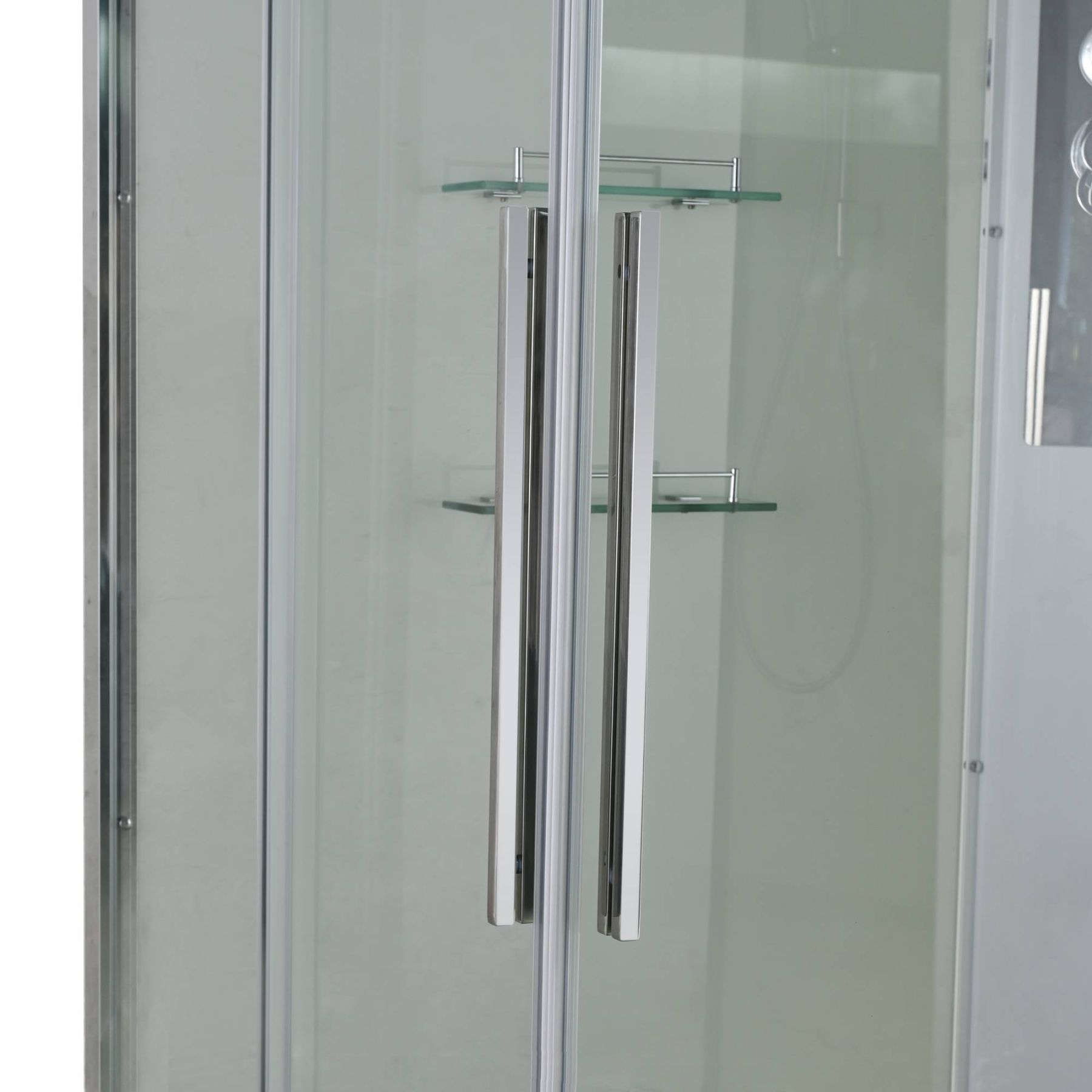 Стильная душевая кабина AvaCan сочетает в себе высокую функциональность, практичность и надежность. При изготовлении применяется безопасное закаленное стекло, надежно фиксируемое алюминиевым профилем. Профиль сделан из алюминия повышенной прочности. Сборка без силикона (увеличивает срок службы, защищает от протечек), внутренняя сборка (облегчает установку и ревизию; позволяет установить в ограниченном пространстве и обойтись без демонтажа других сантехнических приборов), смеситель резьбовой (без хомутов). Съемный экран поддона (позволяет осуществлять подключение и ревизию сифона).Двойные металлические ролики дверей (распределение нагрузки на два ролика, увеличивают срок службы). Душевая штанга(позволяет регулировать по высоте ручную лейку), ручная арома-лейка с витамином С (картридж в комплекте,есть возможность замены или удаления картриджа), полочки(из стекла, с ограничителем), сифон с гидрозатвором.