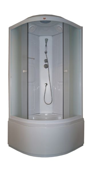 Душевая кабина Parly AE901Размеры душевой кабины Parly AE901Размер: 90х90х215 смСветлая компактная кабина подойдет в дом молодой семьи: высокие борты поддона позволяют набирать воду для замачивания вещей и купания детей, животных.Достоинства:Закаленное стекло толщиной 4 мм практически невозможно разбить. Матовое полотно не требует часто чистки. Сквозь стекло можно рассмотреть только контуры тела.Задние стенки из акрила.Профиль: белый алюминиевый. Профиль устойчив к коррозии и не боится высокой влажности.Поддон: высокий 48 см, полукруглый, с рельефным дном.Комплектация: верхний душ ТРОПИК, ручной душ, сифон.Возможна установка пульта управления в центральную панель.монтаж без силикона