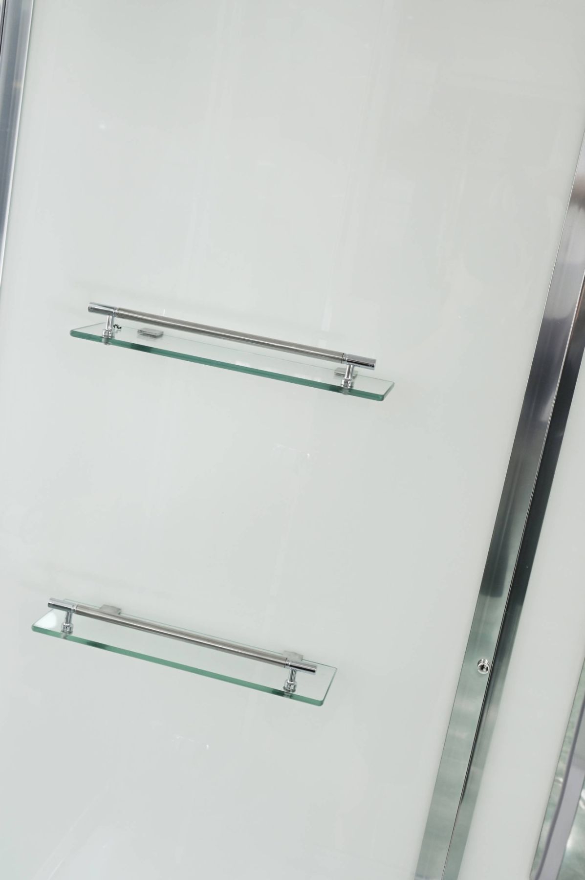 Стильная душевая кабина AvaCan сочетает в себе высокую функциональность, практичность и надежность. При изготовлении применяется безопасное закаленное стекло, надежно фиксируемое алюминиевым профилем. Профиль сделан из алюминия повышенной прочности. Сборка без силикона (увеличивает срок службы, защищает от протечек), внутренняя сборка (облегчает установку и ревизию; позволяет установить в ограниченном пространстве и обойтись без демонтажа других сантехнических приборов), смеситель резьбовой (без хомутов). Съемный экран поддона (позволяет осуществлять подключение и ревизию сифона).Двойные металлические ролики дверей (распределение нагрузки на два ролика, увеличивают срок службы). Душевая штанга(позволяет регулировать по высоте ручную лейку), ручная арома-лейка с витамином С (картридж в комплекте,есть возможность замены или удаления картриджа), полочки(из стекла, с ограничителем), сифон с гидрозатвором.
