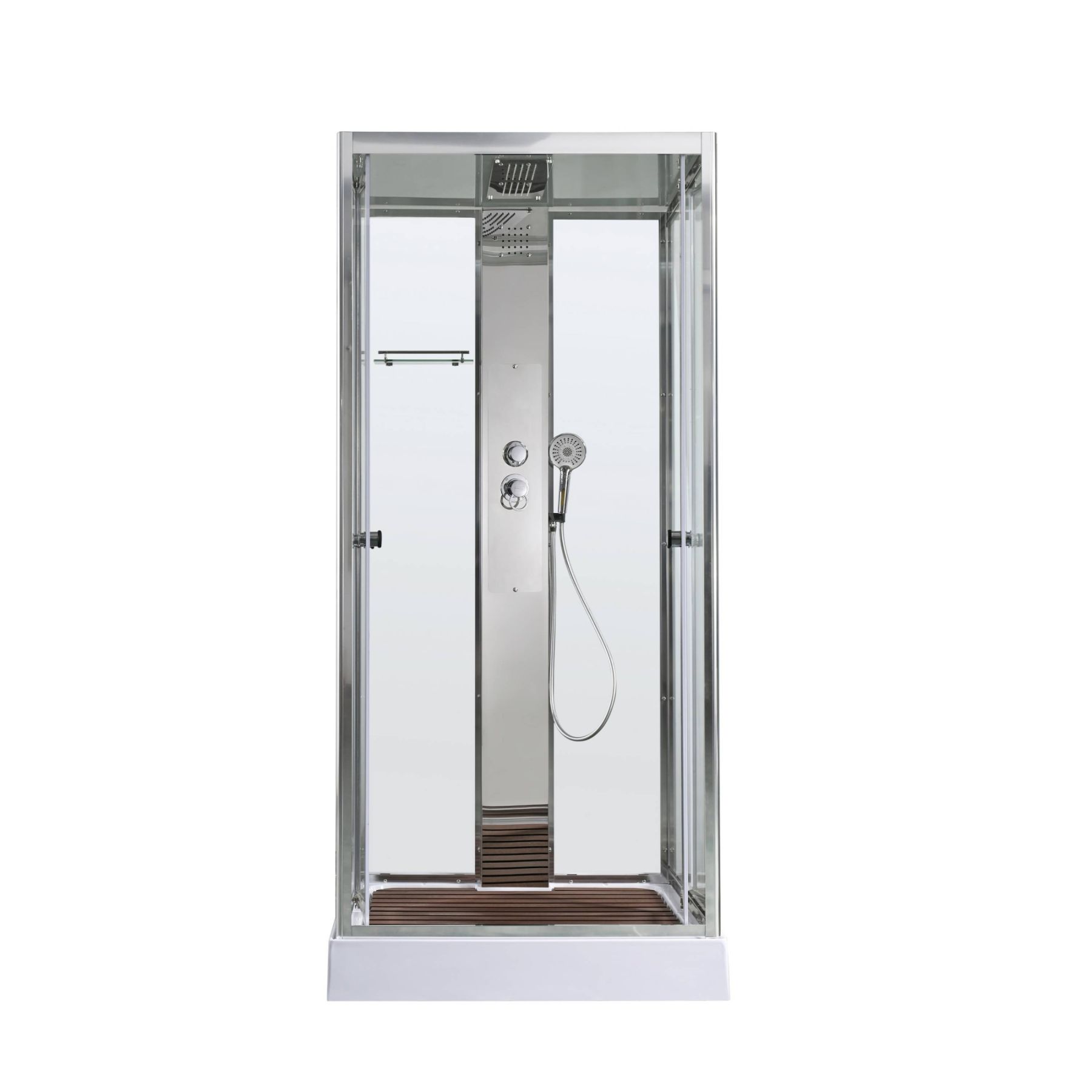 Стильная душевая кабина AvaCan сочетает в себе высокую функциональность, практичность и надежность. При изготовлении применяется безопасное закаленное стекло, надежно фиксируемое алюминиевым профилем. Профиль сделан из алюминия повышенной прочности. Сборка без силикона (увеличивает срок службы, защищает от протечек), внутренняя сборка (облегчает установку и ревизию; позволяет установить в ограниченном пространстве и обойтись без демонтажа других сантехнических приборов), смеситель резьбовой (без хомутов).Двойные металлические ролики дверей (распределение нагрузки на два ролика, увеличивают срок службы). Душевая штанга(позволяет регулировать по высоте ручную лейку), ручная арома-лейка с витамином С (картридж в комплекте,есть возможность замены или удаления картриджа), полочки(из стекла, с ограничителем), сифон с гидрозатвором.