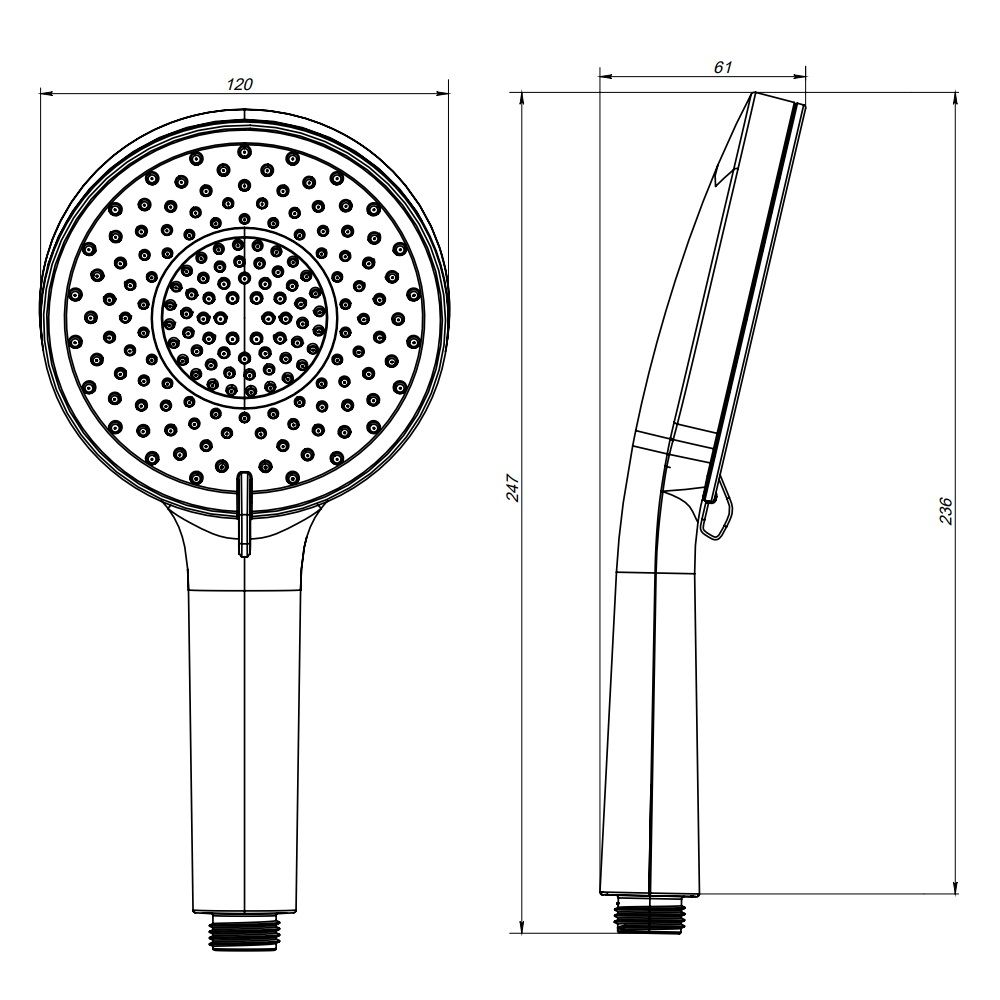 - Размер ручного душа, см:12
