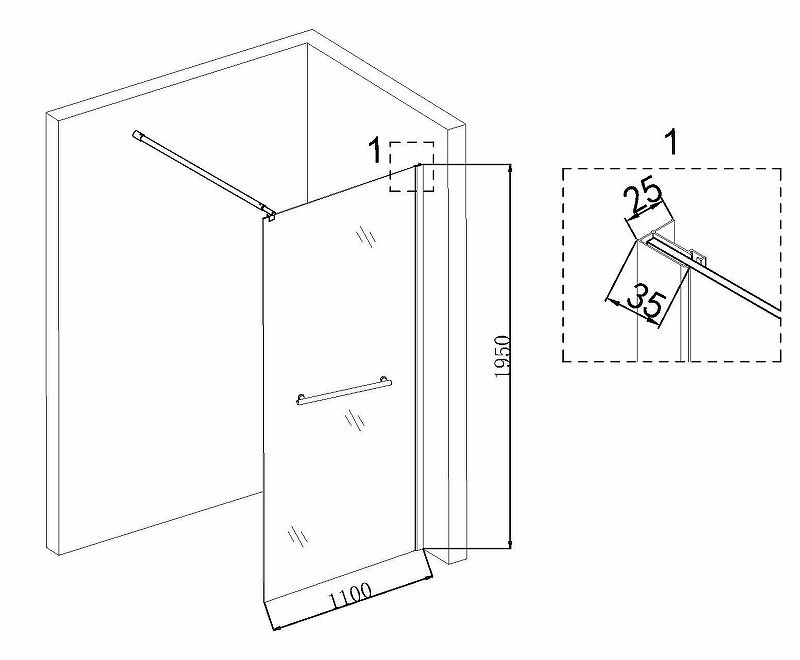 Исполнение полотна перегородки: прозрачное закаленное стекло, толщиной 6 мм.