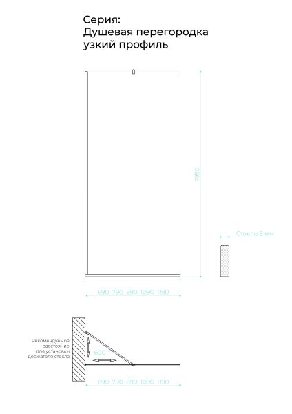 Душевая перегородка в профиле by Deonria P-195-79-8-G-B 79см чёрный/графит купить
