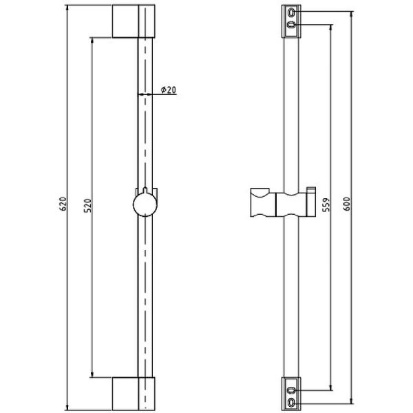 Душевая штанга Rav Slezak PD0015CMAT черныйPD0015CMAT Душевая штанга 60 см d20 мм., металл/пластик, ЧЕРНЫЙ МАТОВЫЙ