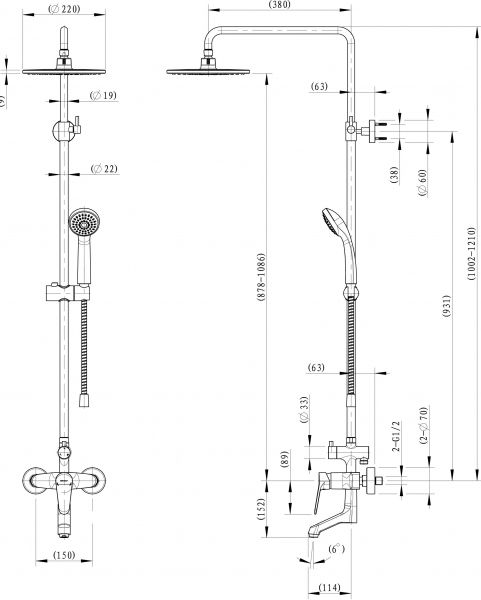 • Размер верхнего душа, см: