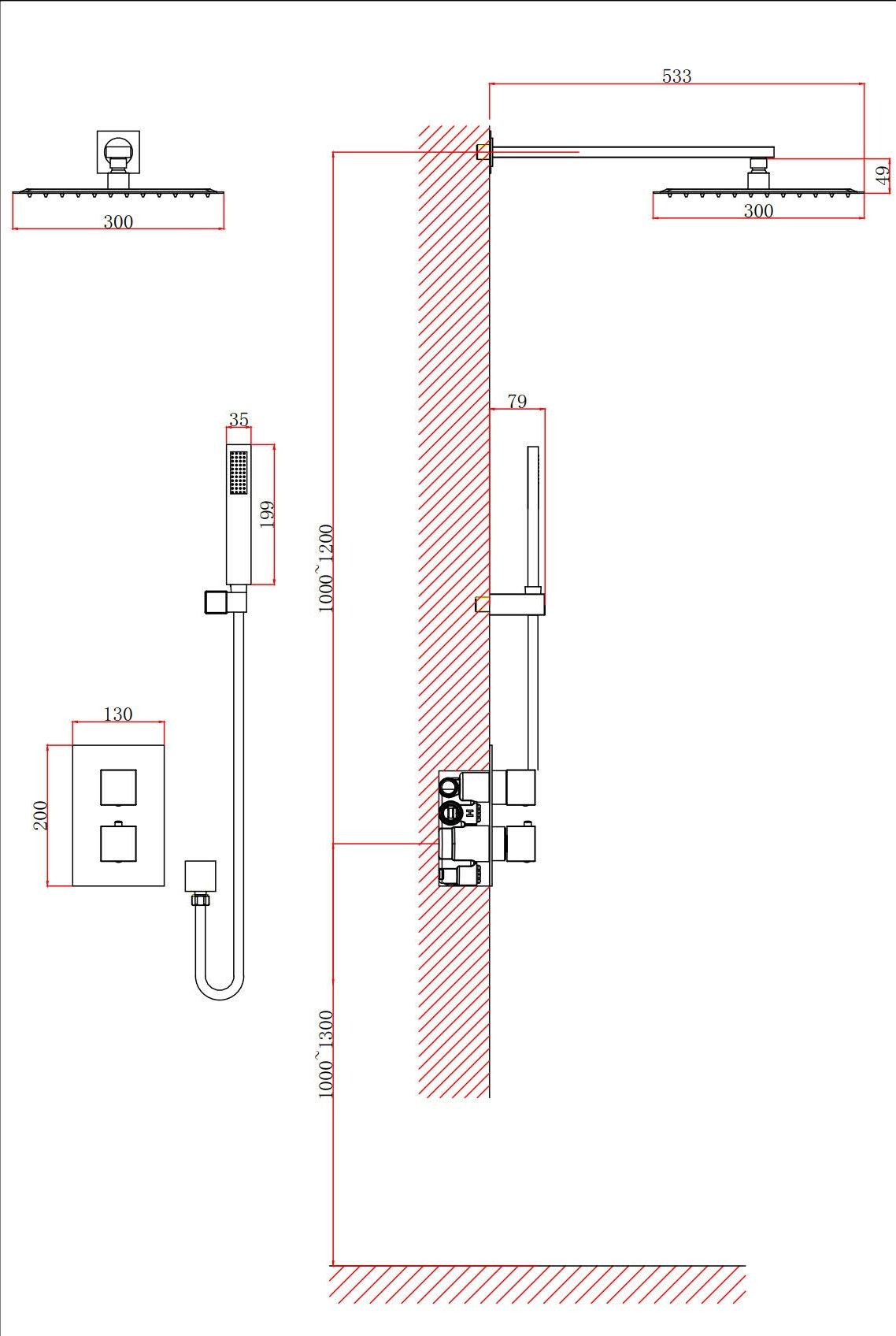 - Размер верхнего душа, см:30