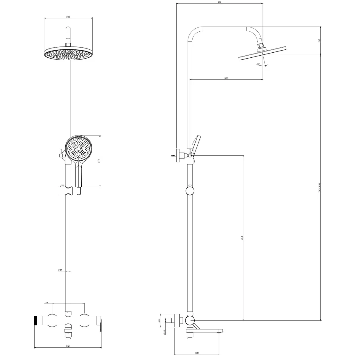 Душевая система DQ Koln DA1753701 225 мм, со смесителем, хром купить