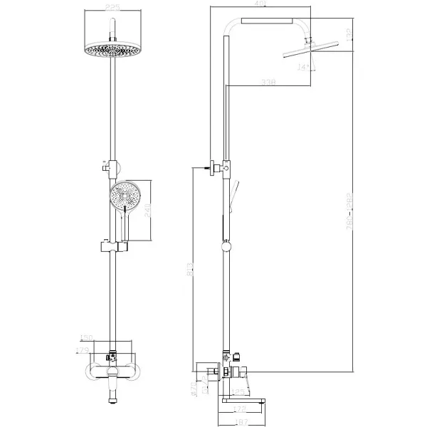 Душевая система DQ Leipzig DA1763701 225 мм, со смесителем, хром