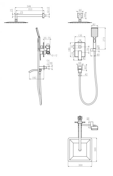 Душевая система скрытого монтажа Grocenberg GB5007BG Графит