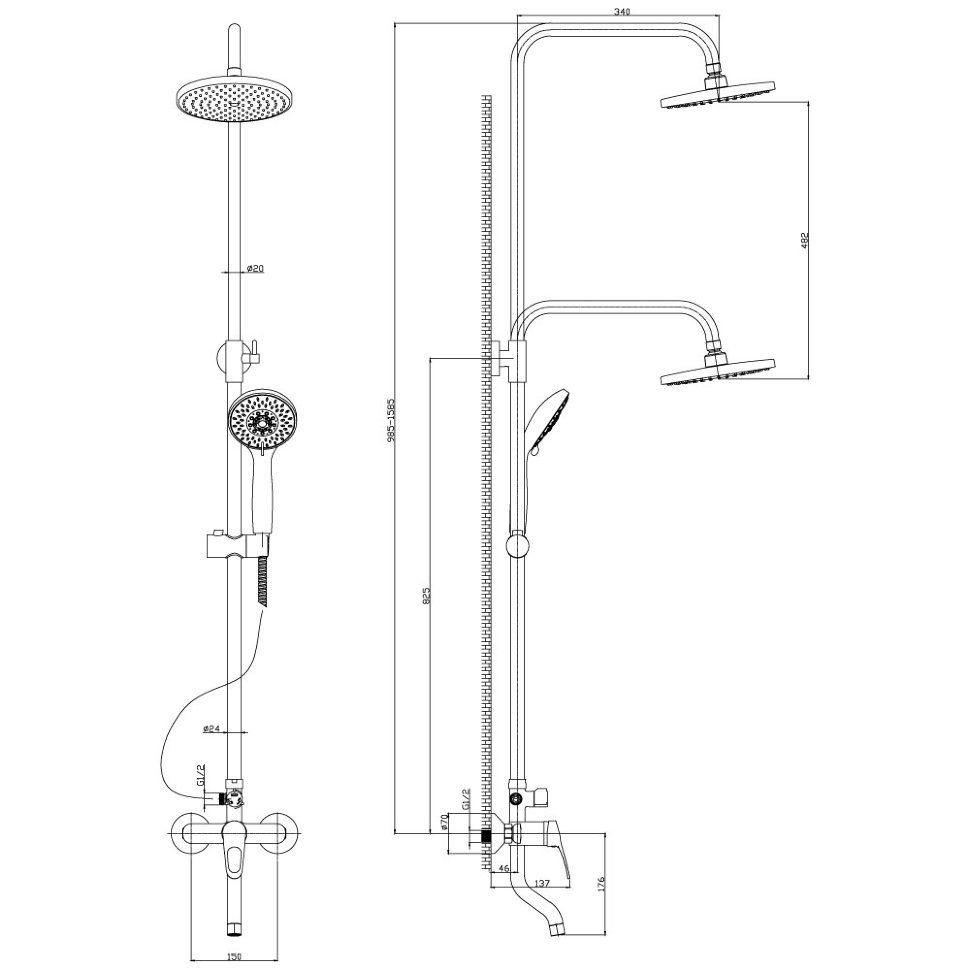 • Размер верхнего душа, см: