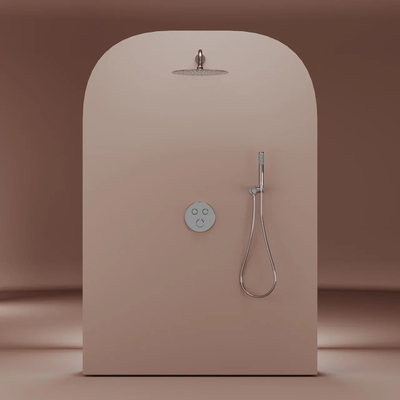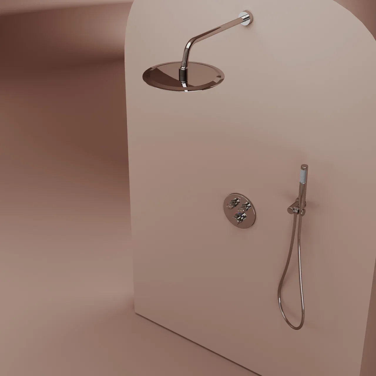 Душевой комплект SANCOS Link встраиваемый, c термостатическим смесителем, верхним, ручным душем и шлангом в комплекте цвет хром, арт. SC3005CH