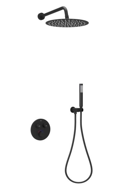 Душевой комплект SANCOS Link встраиваемый, c термостатическим смесителем, верхним, ручным душем и шлангом в комплекте, цвет черный матовый, арт. SC3005MB