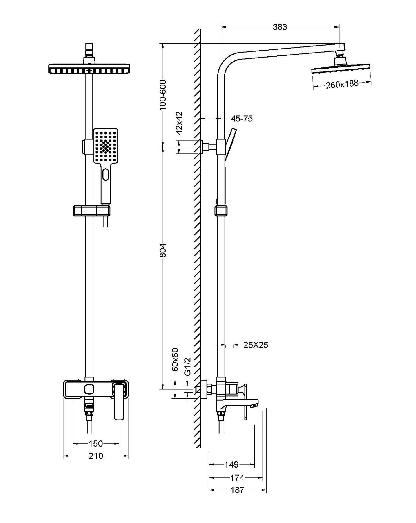 • Размер ручного душа, см: