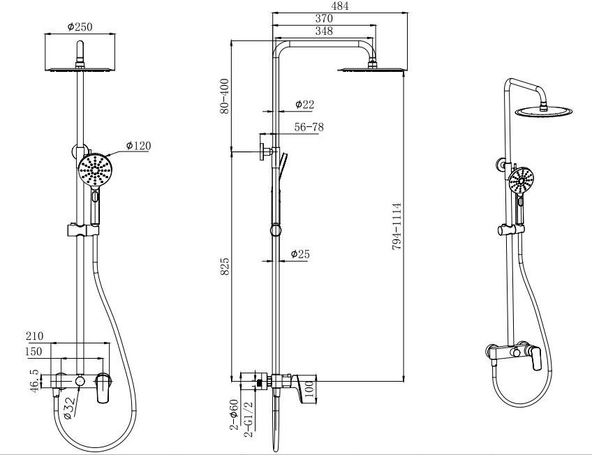 - Размер верхнего душа, см:25