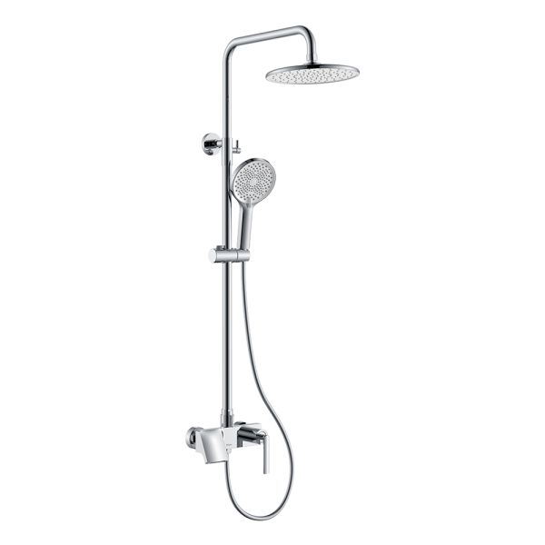 Душевая стойка в цвете глянцевый хром датского производителя Black&White. Корпус изделия произведен из сантехнической латуни – безопасного и коррозиестойкого сплава.Управление потоками и температурой воды выполняет керамический картридж повышенной пропускной способности.  Из потребителей на комплекте установлен верхний душ, ручной душ, а также на верхней части корпуса под углом расположен каскадный излив для набора емкостей. Для выбора режима работы  у основания стойки расположен поворотный дивертор выполненный в виде кольца с дополнительным выступом для удобства использования мокрыми руками.