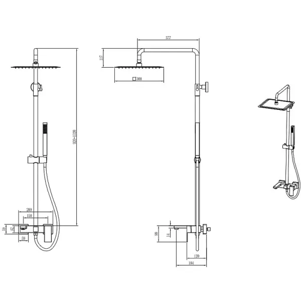 - Размер верхнего душа 300х300 мм.