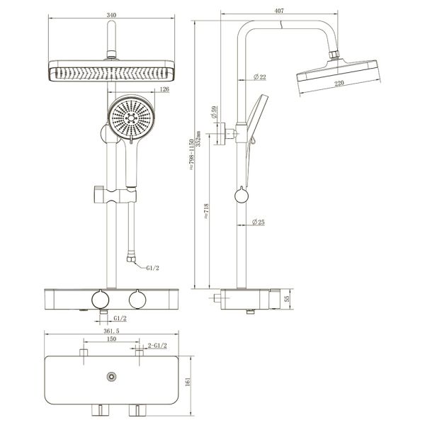 Душевая стойка FOSSA, графит брашинг