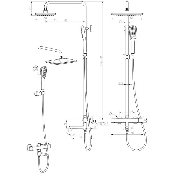 Душевая стойка Lemark Ursus LM7272BL с термостатом чёрный купить