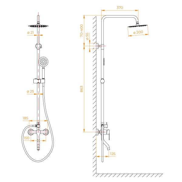 - Размер верхнего душа, см:20