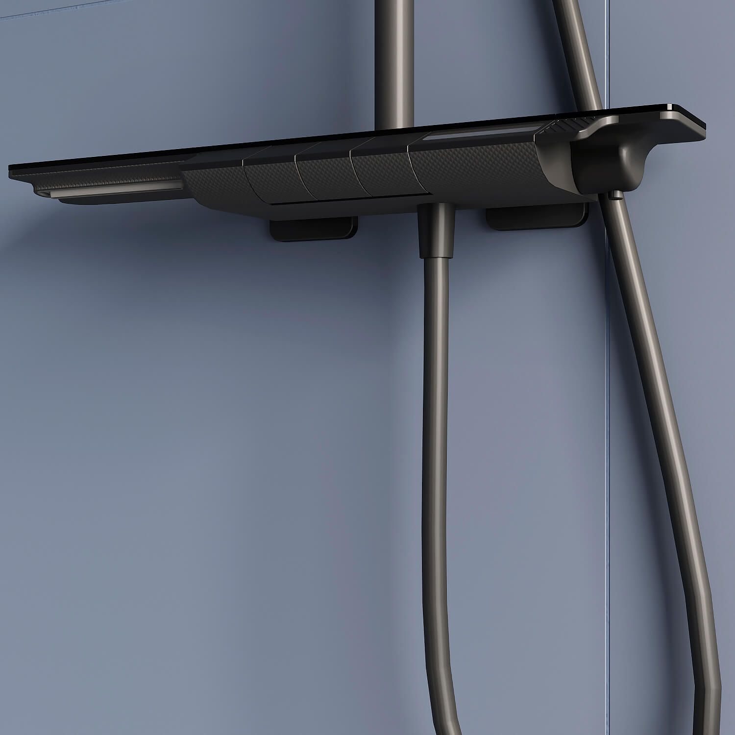 • Вместительная стеклянная полка для душевых принадлежностей;
