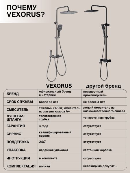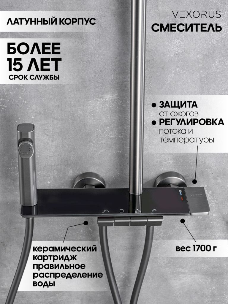 Душевая система с краном бренда Vexorus - это идеальный выбор для тех, кто ценит качество, стиль и комфорт. Представленное оборудование является надежным и долговечным, что позволяет использовать его на протяжении многих лет.