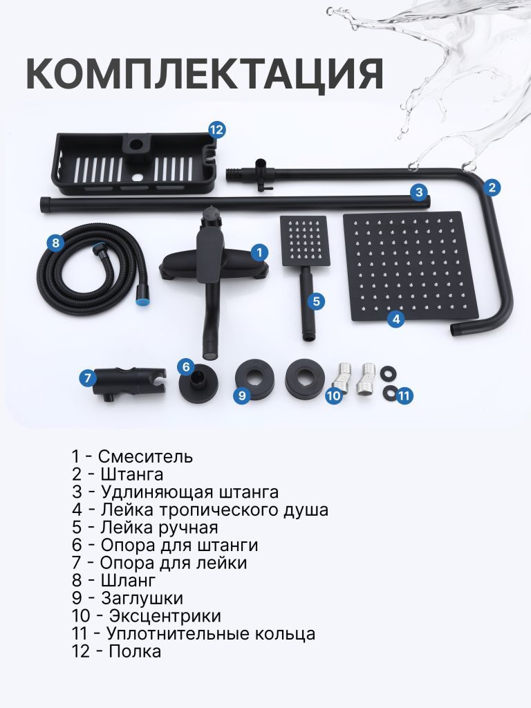 Душевой гарнитур содержит все необходимое для монтажа. Кроме того, наша душевая стойка хром имеет простой и быстрый монтаж, благодаря чему вы сможете установить ее самостоятельно без привлечения специалистов. Это позволит сэкономить время и деньги, а также получить удовольствие от процесса создания своего уютного уголка в ванной комнате.