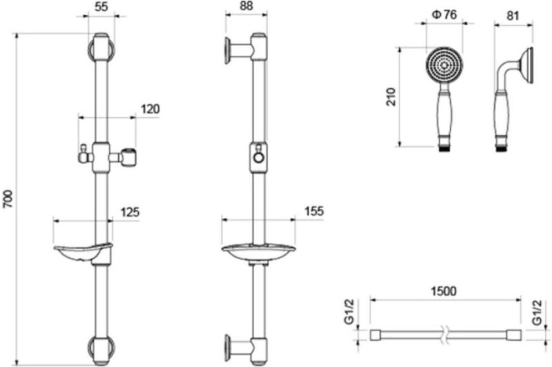 Душевой гарнитур Aquatek Классик AQ2020PG золото