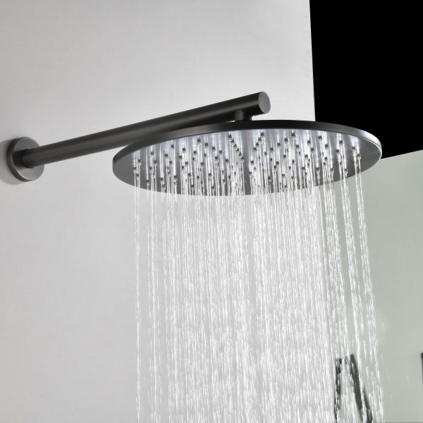 Комплект скрытого монтажа для душа датского производителя Black&White в цвете оружейная сталь. Корпус изделия выполнен в форме диска, в который интегрирован термостатический картридж прогрессивного типа для настройки температуры с постоянным давлением, а также кнопочный дивертор для выбора нужного потребителя. В комплектацию входит верхний душ на кронштейне цилиндрической формы и ручная лейка с режимами. Скрытая часть также входит в комплектацию данного изделия.
