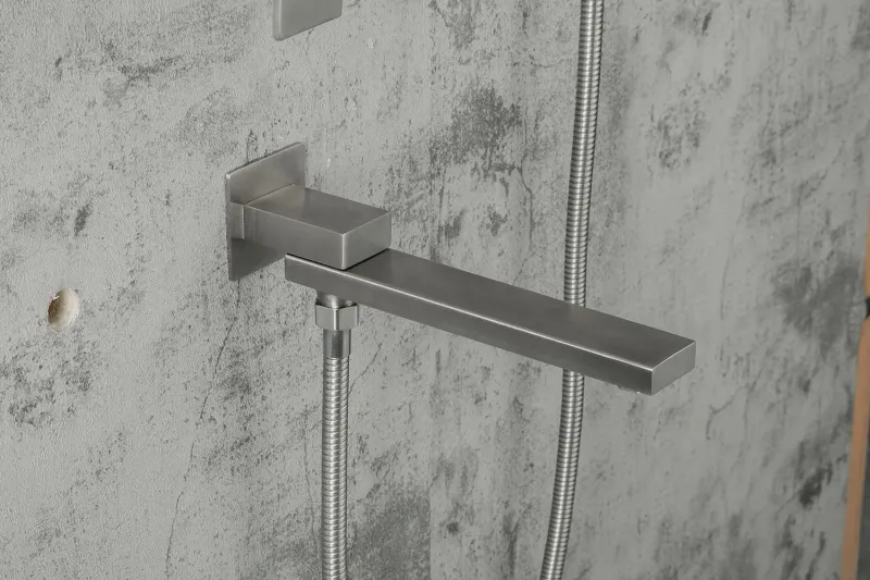 Душевая система скрытого монтажа Gappo G7199-20 — из нержавеющей стали, с отделкой "сатин". Система состоит из встроенного смесителя, верхнего тропического душа, поворотного излива для ванны, ручной лейки с держателем, душевого шланга и комплекта креплений. Поворотный излив является переключателем излив / ручной душ. Тропический душ с силиконовым вкладышем легко очищается от известкового налета.