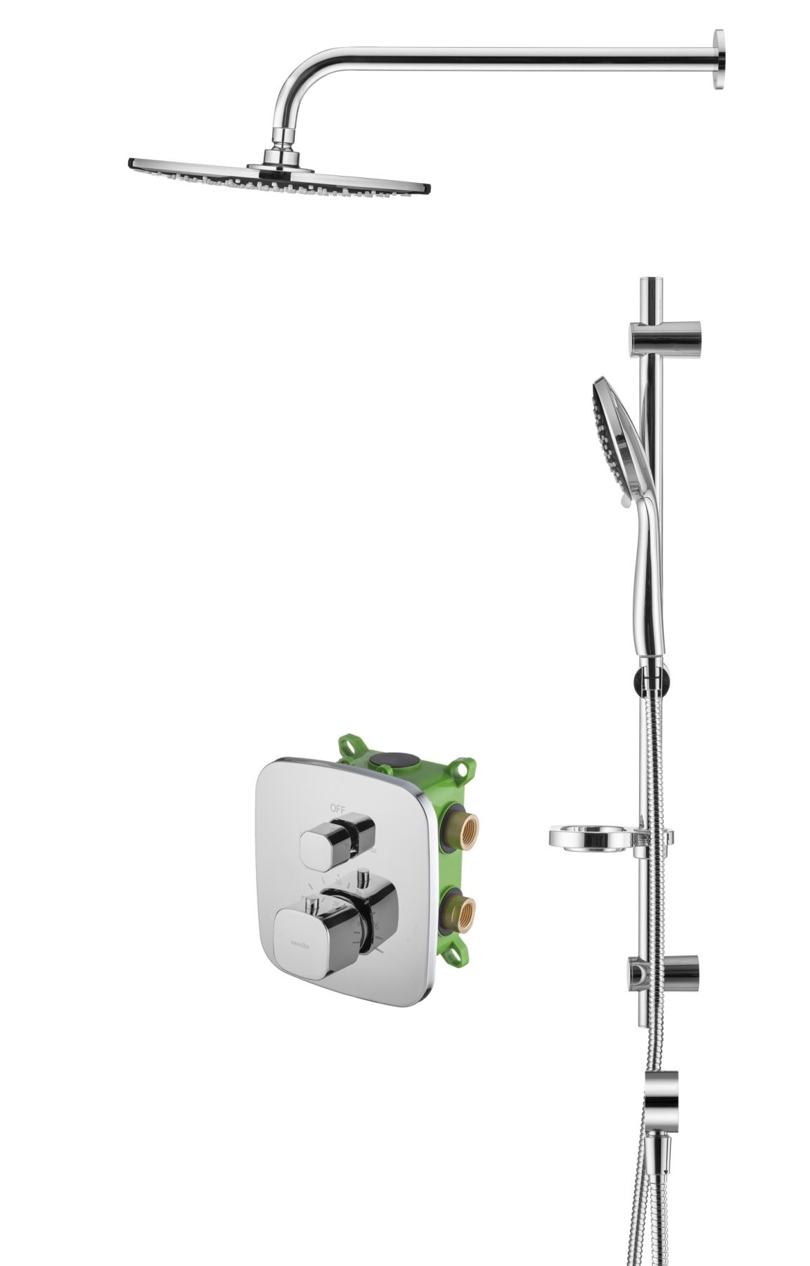 Душевой комплект со встраиваемым термостатическим смесителем на 2 выхода (в монтажном боксе), в... Подробнее